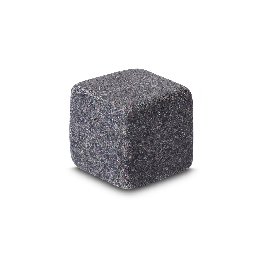 O Kit Drink inclui copo de vidro (200 ml), pegador de gelo em aço inox, 3 cubos de pedra-sabão reutilizáveis e caixa de madeira elegante.