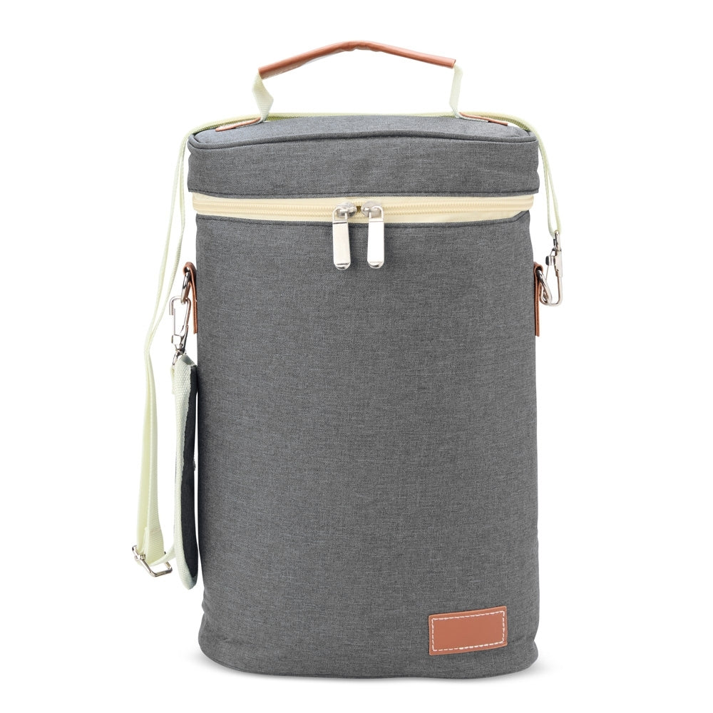Bebidas geladinhas e frescas por muito mais tempo! O nosso porta-garrafas térmico é excelente para garantir a temperatura das bebidas em qualquer lugar. Feito em nylon com detalhes em couro sintético, contém divisória integrada à bolsa. Ele comporta até duas garrafas e ainda conta com um suporte para abridor ou outros acessórios. Além disso, vem com alça de mão e alça de ombro ajustável e removível para maior conforto e praticidade. E para torná-lo ainda mais especial, oferece espaço para personalização, deixando-o único e exclusivo.
