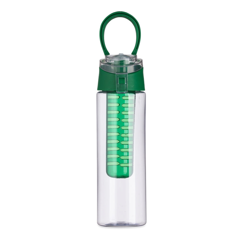 Um squeeze plástico versátil com capacidade de até 700 ml. Ele possui tampa rosqueável com protetor de bocal transparente e trava de segurança. Além disso, conta com um infusor plástico rosqueável.