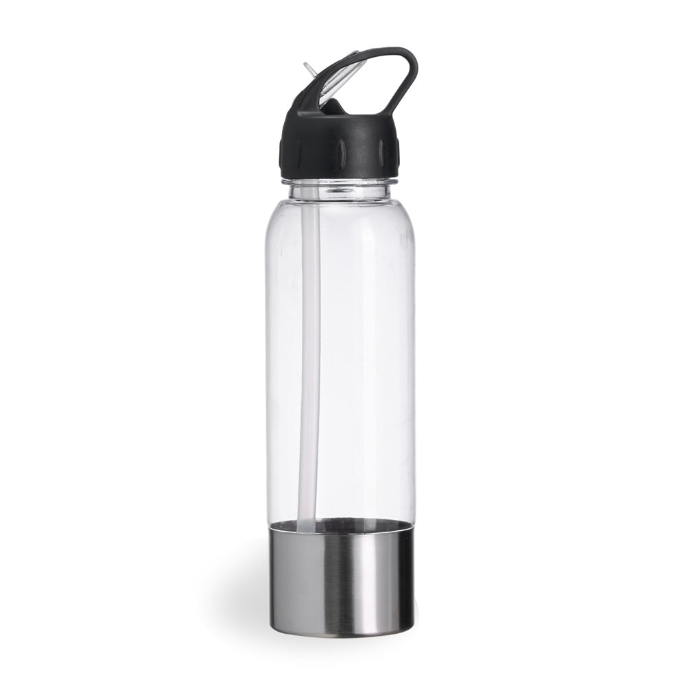 Nossa squeeze combina a leveza e a resistência do plástico com a durabilidade e o toque estético de uma base metálica. Com tampa rosqueável e bico prático, ela ainda acompanha um canudo para facilitar a hidratação em qualquer momento, sem derramamentos. Ideal para acompanhar em todas as atividades, essa garrafa une funcionalidade e design moderno na hora de consumir bebidas.
